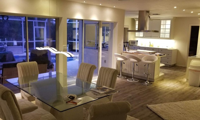 We are located directly on the water with a boat dock, pool, and canal close to the bay, no neighbors on the other side of the canal! Enjoy total privacy! Close to 5th, ave (1 mile walking distance), Close to the beach!