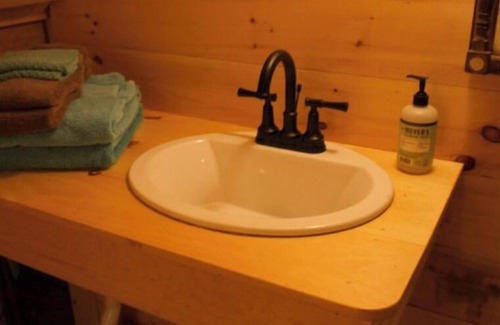 A charming cabin with a cozy loft sleeping area with a queen size bed. A comfortable space, still a work in progress.Everything you need for cooking, although there are wonderful places to eat out nearby. There's an indoor hot water shower and outhouse , and a wood burning stove for cool evenings.