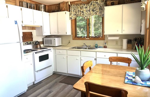 Enjoy the quiet, relaxation and complete privacy at the end of a private dead-end road. Clean, comfortable, non-smoking, newer furnishings, 2 bedrooms each with king size bed, and all the amenities, with Verizon WiFi internet, fire pit, huge but still cozy and comfortable screened porch with comfortable outdoor seating, charcoal grill, and kayaks and canoe for guests to enjoy. Walk the beautiful blueberry lined dirt roads (pick all you want) in the neighborhood, or walk nearby at the National Fish Hatchery for walking, hiking, and enjoying gorgeous views.