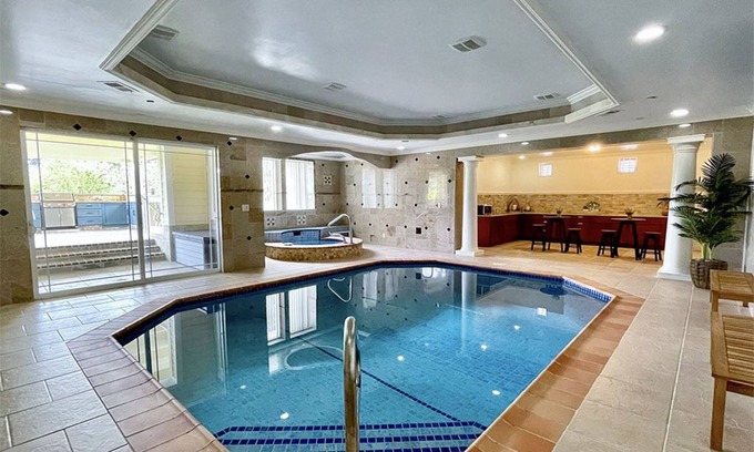 The stairs leading to the pool area are steep. We added carpet to reduce slipping, a lockable child safety gate at the top, and a keypad for access control to the pool area from inside the house. Parents can choose to keep the pool area unlocked or locked based on preference. Please note that we have a remote for guests to use that will heat the spa in about 15 minutes. This remote is ONLY for the spa. We remotely heat the pool to 80 degrees. However, between the hours of 11 pm and 8 am the heating of the spa will be unavailable due to the pool filtration system being on. Please be care when entering the pool, the steps are tile and are slippery. There is a handrail to use when entering the pool.