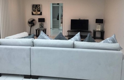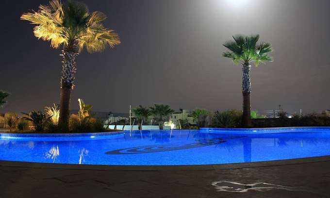 Fully air-conditioned beautiful sea-view penthouse flat with two bedrooms ( one queen bed with attached bath & his n her basins and another with twin beds n attached bathroom with shower enclosure). Bedrooms are located on the either side of the living room / kitchen cum dinning space. Out side private balcony with Jacuzzi and breathtaking views of Mediterranean sea. 5 star holiday resort with 7 pools, basket ball and tennis courts. Restaurent serving breakfast lunch and dinner near main pool area.