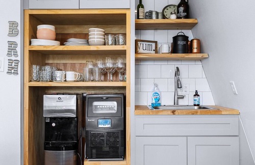 During your stay, take advantage of the beautiful outdoor common areas, including a fire pit, gazebo, and deck where you can relax and enjoy the fresh Hill Country air. Guests also have access to a shared dining area with an ice maker, coffee station, and filtered water, ensuring extra convenience throughout your stay.