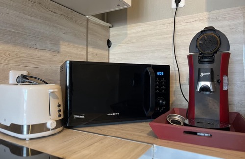 - To your right you will find the kitchen equipped to allow you to prepare delicious meals without the chore of washing up! On your arrival you will have salt, pepper, oil, coffee, tea and sugar available to allow you to start your stay without missing the essentials**