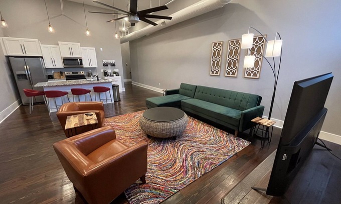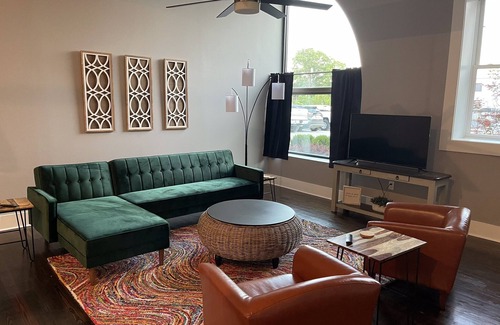This Bohemian Chic loft is in the heart of downtown Macon. Enjoy bars and great food, in walking distance to Macon nightlife. Great for couples to stay for a long weekend, for guest traveling for work and even for those just passing through Macon to their final destination. This loft offers spacious rooms which includes a bedroom with a king size bed and sofa bed in the living room allowing for up to 4 people. Both living room and bedroom have televisions with Roku.