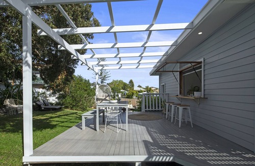 This 2 bedroom dual occupancy home offers open plan living both inside and out. There is a modern, fully equipped kitchen with servery opening onto the side deck to enjoy afternoon drinks or bbq with friends.