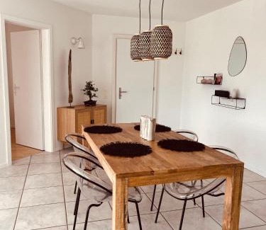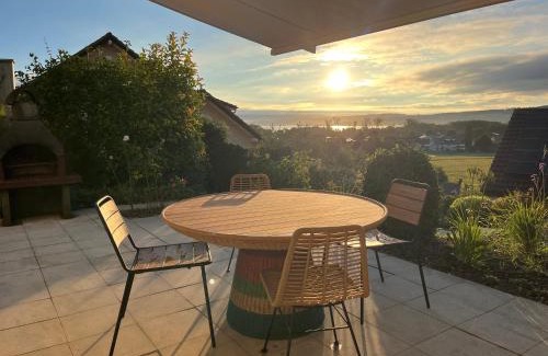 Boho appartement dans villa à Grandson offers accommodations in Grandson, 25 miles from Palais de Beaulieu and 25 miles from Lausanne Train Station. This apartment provides free private parking, bicycle parking, and free Wifi. Saint-Point Lake is 31 miles away and Creux du Van is 18 miles from the apartment. Providing a terrace and mountain views, the spacious apartment includes 1 bedroom, a living room, flat-screen TV, an equipped kitchen, and 1 bathroom with a bath. Towels and bed linen are featured in the apartment. The property has an outdoor dining area. Vennes is 25 miles from the apartment, while Les Croisettes is 25 miles away. Bern-Belp Airport is 53 miles from the property.