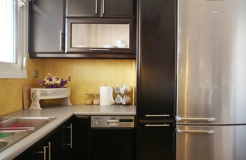The 2 bedrooms have queens beds and brand new anatomic matresses. The rooms are made with raw wood details and the cozy bedrooms brings to mind the unassuming elegance of the Cyclades. The decoration is kept sweet and simple with natural fabrics and a handful of refined collectibles.