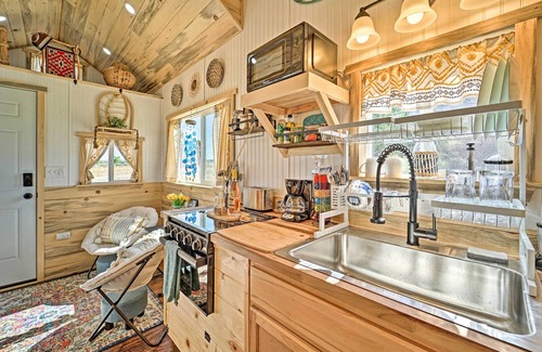What Makes 'Boho Bliss' Cortez Tiny Home: Fireplace, Fire Pit Perfect for Weddings