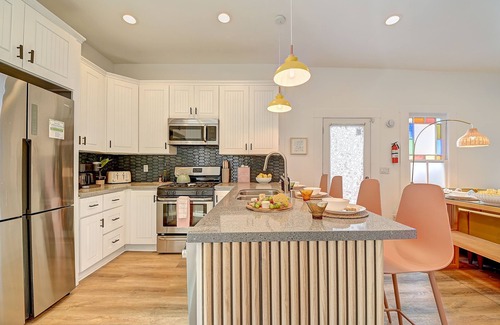 Welcome to Boho Bungalow! Unwind in this stylish Downtown retreat minutes from the Convention Center, Gaslamp, Zoo, and beaches! Perfect for families and groups, this newly renovated historic home features a private backyard with hot tub, outdoor movie projector, fire pit, BBQ and outdoor dining. Enjoy luxury bedding, a fully stocked kitchen, smart TVs, and designer decor. Family-friendly touches include a crib, high chair, and games. Ideal for work or play - your home base for SoCal fun and events!
