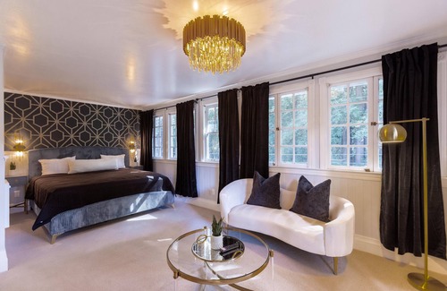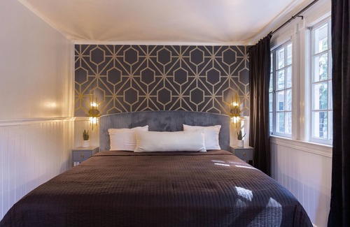 Boho Manor is an Gatsby themed hotel resort with multiple amenities like kayaks, paddle boards, bicycles, spa, a full restaurant and speakeasy. Come join for a cocktail with one of our specialty cocktails on a river lounge or firepit. Enjoy a Gatsby style garden view room with a private bathroom and balcony between tall redwood trees. This stylish and unique place sets the stage for a memorable trip.