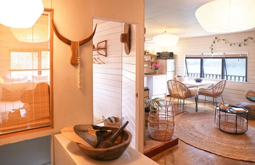 Take it easy at this unique and tranquil getaway. Located on Great Barrier Island in the Port Fitzroy area. Bohohill has elevated views overlooking Kaiaraaara Bay, Kaikoura Island & the natural surroundings. Soak up the views from this comfortable space, guest will enjoy this 1 bedroom stylish & cosy apartment. Relax outdoors on the deck area for breakfast and in the evening snuggle up to the fire listening to music or enjoy your favourite novel. Bohohill offers peace and tranquility.