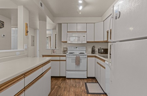 Beyond the condo itself, guests have access to fantastic community amenities, including a pool and hot tub, sauna, game room with foosball and poker, a large workout room and pickleball courts! You'll also find a full-size kitchen, sitting area with fireplace and TV, and a book nook if you wanna get away. It's all great for unwinding after an active day.