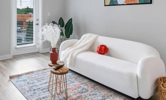 Welcome to your beautifully furnished 2BR/2BA haven at Bold on Blvd! Open the door and embrace modern living in the spacious living area. The open-concept layout seamlessly blends comfort and style, with sleek vinyl plank flooring creating a light and airy feel.