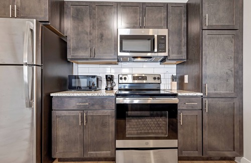 As a guest of Properties by Preston at Bold on Blvd, you'll enjoy exclusive access to your private sanctuary, featuring 1 cozy bedroom, 1 bathroom, a spacious living room, a fully stocked kitchen, a convenient laundry closet, and your own private balcony for unwinding under the stars.