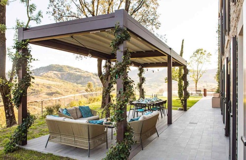 This Bologna villa rental sits within an estate where there are five other villas as well as some hotel rooms. Each villa enjoys complete privacy. This location has some real benefits for guests staying here. It means that you will enjoy all the benefits of a self catered villa but with the added benefits of all the luxuries of a hotel. For example, as well as your own private pool, should you wish to, guests can also receive access to the other resort pools on site as well as the on site spa for an additional fee. Please ask for more details or for a quote with these services included.