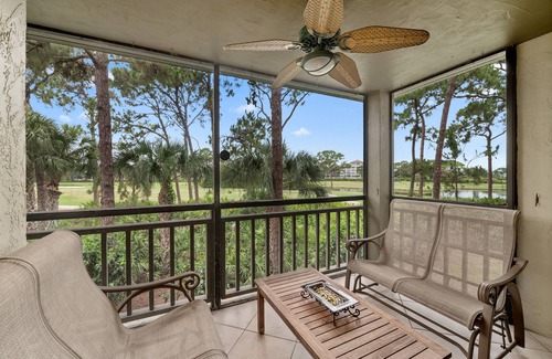 Quiet property in gated community overlooking lake, golf course, and tropical preserve. Wild Pines is noted for its tranquil setting, convenience to shopping and restaurants, and unique availability for weekly rental in Bonita Bay. Wild Pines has many returning vacation guests. Our condo has been completely remodeled and continues to receive improvements each year. (New in May 2022: vanities, countertops, and toilets in both bathrooms.)