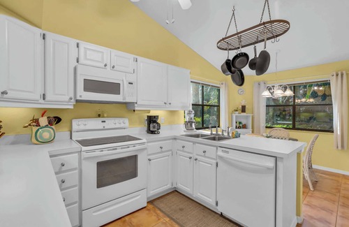 Located in the exclusive Burning Tree subdivision of Bonita Bay, this attached villa is one of only 42 semi-attached homes set amid five lush acres, ensuring privacy and tranquility. Offering a comfortable stay for our seasonal guests, the villa features a King bed, Queen bed, and two Twin beds, along with a sprawling en suite main bathroom and a second full-sized bathroom. With ample amenities, including a well-stocked kitchen and 3 bikes and 4 beach chairs, this villa provides a seamless and relaxing getaway.