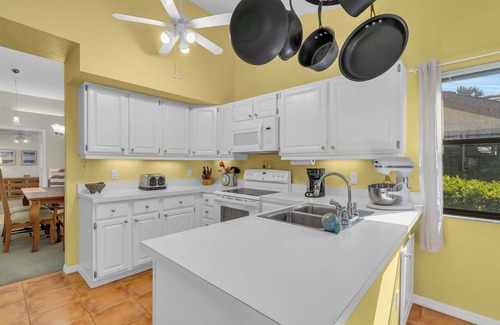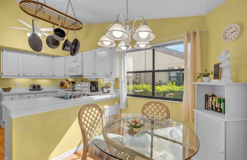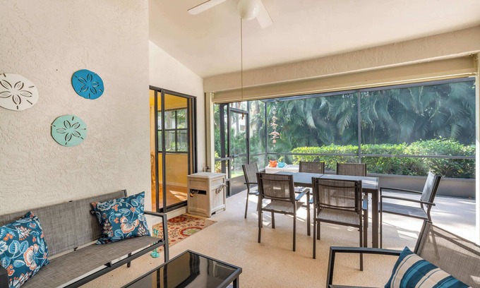 Guests can enjoy the private community pool and a screened-in pool house, ideal for relaxation within a few minutes walk from the front door.