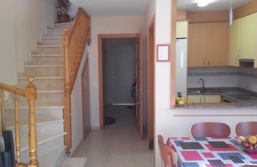 Bonita casa de 2 plantas con un precioso jardín exclusivo, piscina, barbacoa, solarium y porche, muy cerca de Cambrils y Salou. A 20 minutos del parque de atracciones Port Aventura. La vivienda tiene 3 habitaciones, sala de estar, 2 baños, cocina (equipada con frigorífico, lavadora, lavavajillas, microondas, horno, vitrocerámica y todos los utensilios de cocina), cuna para bebé, terraza solarium, porche, jardín privado, parking, piscina comunitaria para uso exclusivo de 3 casas.