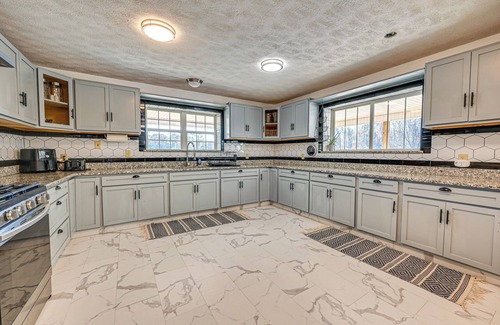 Stress becomes a distant memory at this Bonnieville vacation rental. Nestled on a sprawling acreage, 26 miles from Mammoth Cave National Park, the 7-bedroom, 3-bath farmhouse invites you to enjoy life in the country. Fill your days with visits to Dinosaur World and Mammoth Cave, then return for sunsets off the wraparound porch and quality time with the ones who matter most.