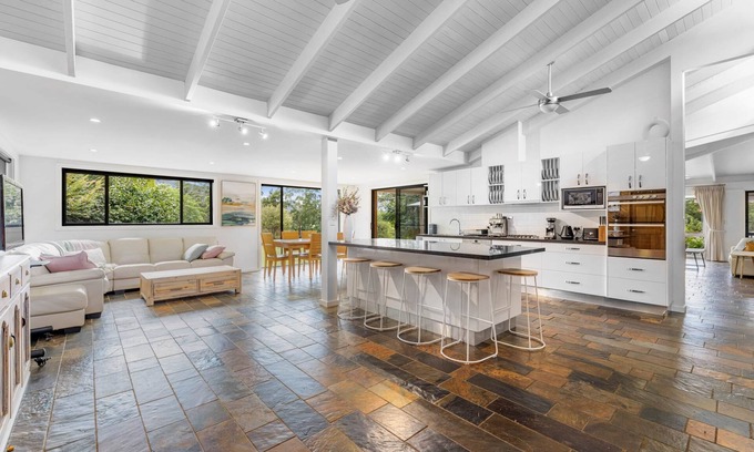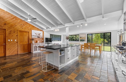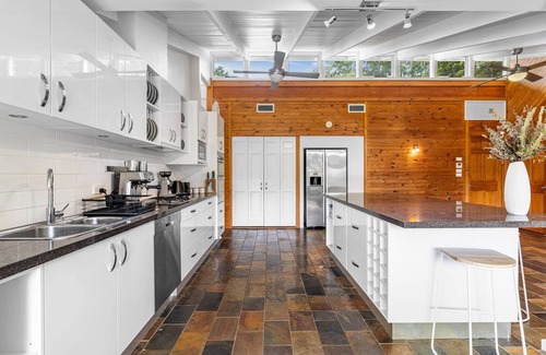 Multiple north facing living spaces to relax, lounge or socialise in. One with a working fireplace for the colder winter evenings. There is also central heating and air conditioning to keep you comfortable in the mid north coast weather all year round.