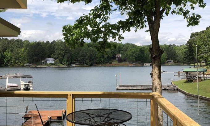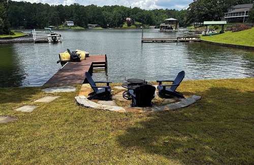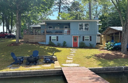 Great family location in a quiet cove with full water view. Make great family memories in this appropriately named "Dockside on Bay Pine Island". Enjoy 4 bedrooms, and 3 bathrooms with one upper bedroom lakeside and 4th separate bedroom suite with private access directly on lakeside. Kitchen with new cabinets, quartz counter-tops, stainless steel appliances and blue water tile back-splash. Fully stocked large kitchen open to family room with vaulted beamed ceiling and large farm table. Big covered back-porch with open views and open deck for grilling. Enjoy the lakeside covered cabana with table/chairs. Add to this an outdoor shower, and firepit. Boondocks Marina just a cove away, close to Wind Creek State Park and River North Marina. Easy access from Hwy 280. Large fireplace for those cold winter months. Jordan Hare stadium about 30 minutes away for Auburn football games. Nice family dock for kids jumping in the water or tying up your boat with easy walk-in stairs. Use the paddle boat, 2 kayaks, and lilypad mat provided to guests for exercise and fun. Make your family memories at a great price. Early/late check-in MUST be approved by owner. Non-authorized pets will have full security deposit deduction.