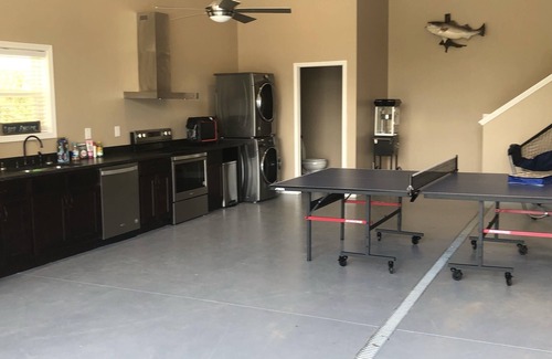 Another option is to hang out with the family in the game room, also equipped with a full kitchen, popcorn machine, big screen TV w/sound bar, ping pong table, darts, pop-a-shot and Bluetooth karaoke machine. Lastly, cap off the night with a star-gazing view from the hot tub.