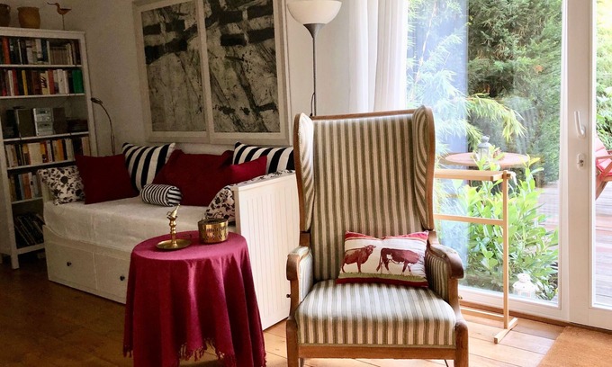 The apartment on the ground floor is very comfortably furnished and equipped with many old collectibles.