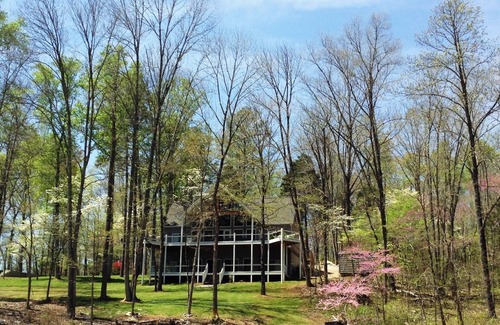 12 year old 4,000 sq. ft. private lakefront home has everything you are looking for. It features breathtaking views of the lake and mountains from each of the two large deck levels partially covered and the floor to cathedral ceiling windows in the great room. Our gorgeous home is situated on a very gentle slope with no steps to climb, ensuring that you aren't so exhausted that you can't enjoy the lake. . (See details below) The walkway to the new private covered boat dock which features a slip for renters and a swim platform and 2 jet ski dock. Close to the dock is a lovely, shaded patio with table and chairs and swing and hammock close by. Great to relax and watch family on dock and playing in the water. There is a large new firepit with plenty of seating and firewood. The downstairs rec room has a TV, sectional and ping pong table, laundry room, wet bar and half bath.