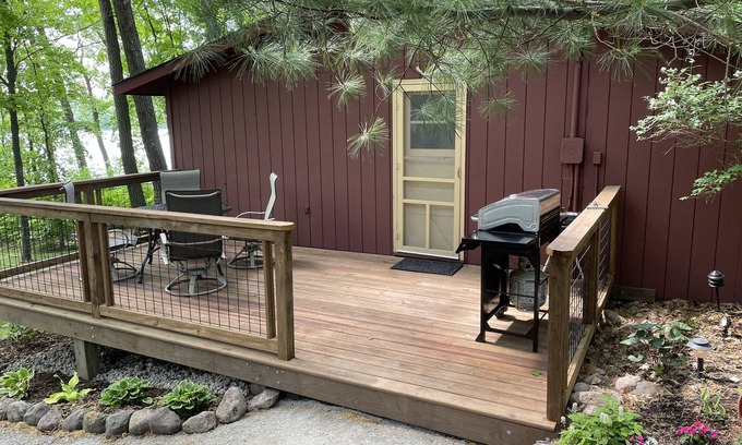 Activities: 2 kayaks provided, paddling around the lake in the pontoon paddleboat, row boat, stand up paddle board, swimming, fishing, hiking and of course relaxing! Outdoor fire pit- lots of wood provided for toasting marshmallows and sitting around the campfire. Listen for the loons and barred owls. Go see the eagle's nest at the south end of the lake. Gated launch available for your own boat. NEW dock May 2022, NEW deck and gas grill!