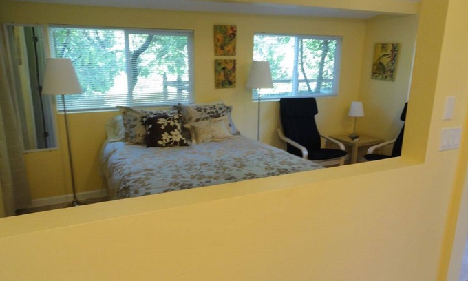 'Redwood Rest,' located in central Boonville directly behind the historic Boonville Hotel; only 5 minute walk to restaurants, tasting rooms, and art galleries (just off highway 128). Anderson Valley supports over fifty vineyards and wineries, with one thousand acres of wine in production. Thirteen of these wineries have tasting rooms, including world class Roederer Estate, all within a ten minute drive from Boonville. Also home of the legendary 'Boonville Beer' which is served at the Buckhorn Saloon and restaurant - a two minute walk from 'Redwood Rest.' Hendy Woods State Park, with its two majestic groves of old growth redwoods is minutes away and a wonderful place to visit and hike its trails.