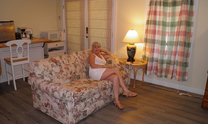Spacious Living room / kitchenet , comfy couch, Queen Ann chair, bar style table with stools seating. Refrigerator, microwave, toaster, and outdoor grill, 42". Hi-def TV (but bring your laptop or Roku), Secretary desk and chair for work, Hi speed internet. In a quiet, rural neighborhood. 1.6 miles from downtown, shopping, restaurants, boat trips, kayaking, bicycle rental .