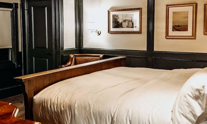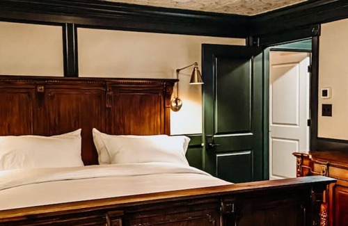 Bootleggers Lodge is one of Wisconsin’s edgiest fine dining experiences and - new in 2025 - guest lakeside Lodge. This listing is for Sofia, one singular room inside of Bootleggers Lodge, a lakefront Lodge. Refined and elegant. Grasscloth and bold, painted paneling, vintage golden frames and elegant sconces create a serene King size room to escape the madness of the day. Can be rented with Florence to create a double King escape that closes off from hallway with shared hall door. Resting at the water’s edge of Lake Nokomis, Bootleggers Lodge is an iconic lakeside Lodge in Wisconsin. Paying respect to its heritage, the design and decor are inspired by its history. The remodel brings together elements of the era to create what would have been – and is today - a high end, elegantly beautiful vantage point from which to overlook Lake Nokomis and what truly is a quintessential American experience. After ascending the staircase to the second floor Lodge, guests are greeted by distressed barnwood flooring, hand hewn timbers, elegant paneling, dramatic wallpaper, grand chandeliers and vintage decor to invite you down the hallway to guest suites. In a nod to periods past, guests will find a beautiful haven with elegant marble bathrooms, inviting you to a relaxing and calm start to your day on the lake. Guests will be provided access to the suites through the use of secure wifi enabled locks. Unique, individualized codes to each locked door will be provided with a confirmed reservation. The staff at Bootleggers Lodge will accommodate any question to help guide you during your stay. Guests can reach out to us by email or phone call with any special requests that we will happily try to accommodate. The General Manager is available during stays to accommodate any questions from guests. During operating hours, guests can enjoy access to the restaurant below and lakeside views from the deck, as well as access to the public beachfront.