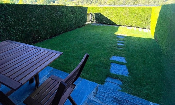 This beautiful detached house is ideal to enjoy nature with the family or friends. It has three double bedrooms, two bathroom one with bathtub and one with shower, living-dinning room with fireplace and access to the private yard, fully opened equipped kitchen and private garage.