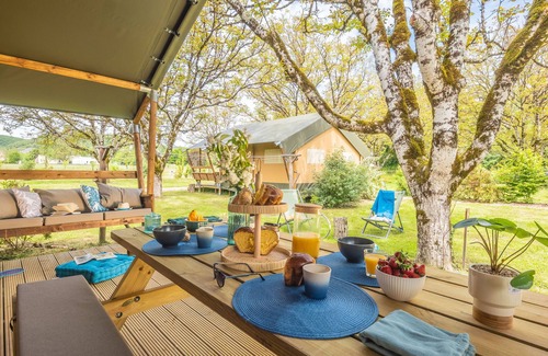 • Tentes lodge haut de gamme ombragées par des noyers, dans un quartier 100% piéton