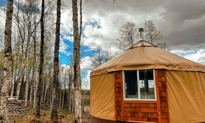 Welcome to Borealis Yurt, a luxurious glamping retreat in the heart of Alaska`s recreational haven. Enjoy easy access to a variety of outdoor adventures, from summer hiking and biking trails to fishing in nearby creeks and rivers, and winter cross-country skiing and snowshoeing trails. After an adventurous day, relax in your cozy yurt featuring a deck, kitchenette, and access to a heated shared bathhouse with a shower and laundry facilities.