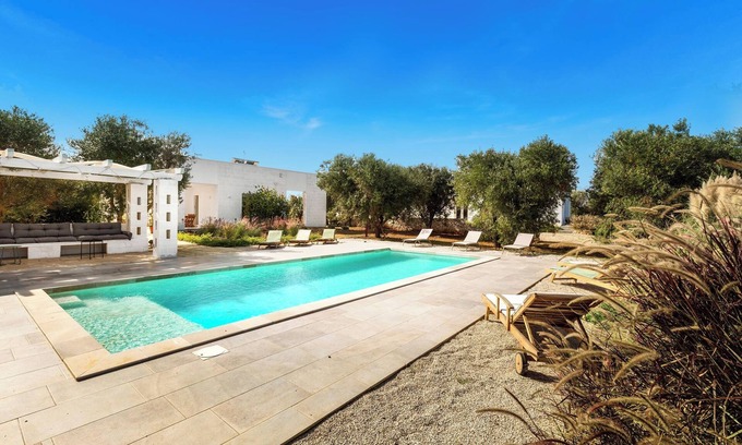 Borgo Morgicchio is an elegant and cozy dwelling, modern villa with swimming pool for exclusive vacations in Apulia, immersed in the quiet olive groves of Carovigno and only 2 km from the beaches.
