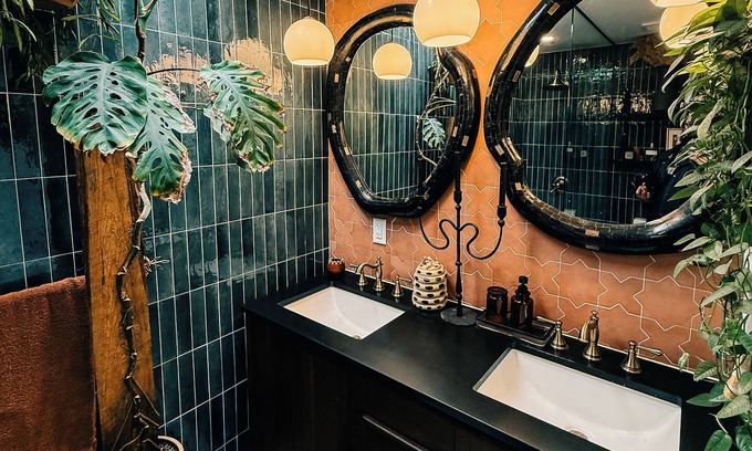 This house was designed by Tegan Williams and contains a tasteful assortment of plant life and decor. From a kitchen made from exotic marble to botanical living space, it provides a relaxing getaway for those looking for it. It is located in a quiet neighborhood and includes a washer and dryer, full kitchen, oven, microwave, coffee maker, dishwasher, and kettle.