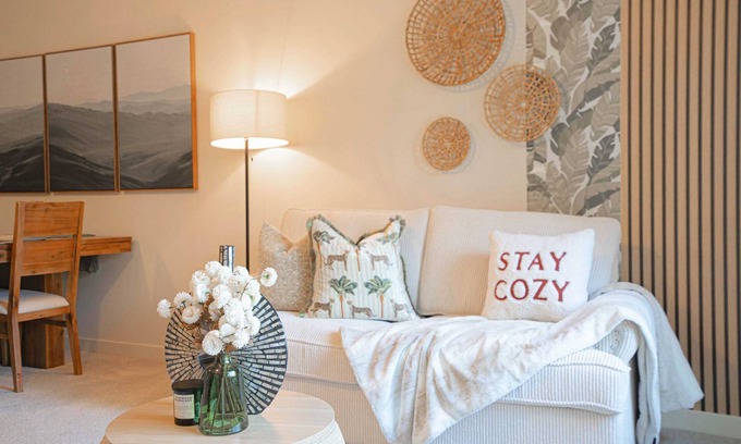 The focal point of the home is an ideal setting for a relaxing time. Natural sunlight accents the modern furniture and light wooden floors enhance the elegant style. Sit back and decide if you will watch a movie, or just relax on our sofa! Not to mention YouTube TV with 80+ live channels, Netflix, and Disney+, they are all free to you.