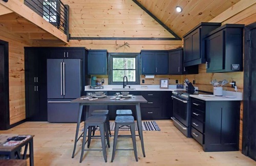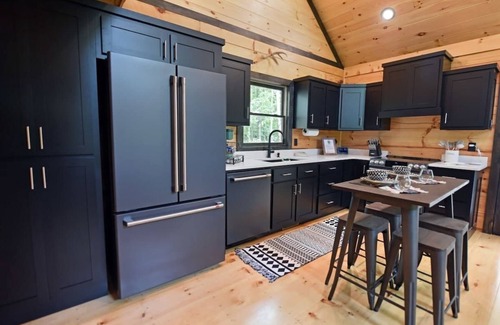 New stylish cabin, minutes from downtown Blue Ridge. “Burt” the moose will greet you as you enter this posh modern mountain escape. The furniture is trendy, linens/bedding are high end, and the artistic décor is warm and inviting. You can practice putting on the porch while enjoying the sounds of nature, relax in the comfortable outdoor furniture or enjoy your favorite beverage by the flagstone fire pit. This cozy cabin is the perfect place to enjoy everything the mountains have to offer.