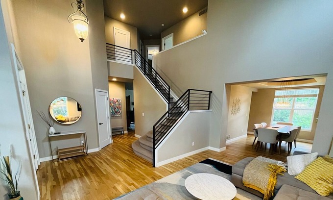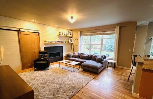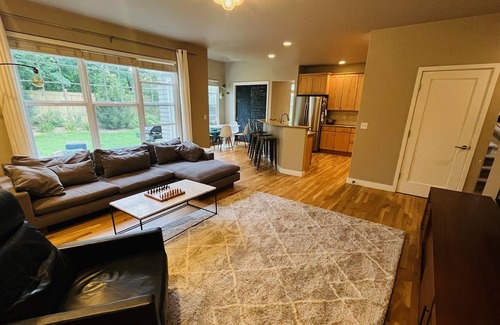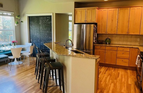 Well appointed kitchen, fenced yard, lovely dining space and comfort throughout. Our home features hardwood floors and a modern feeling. Easy access to hiking trails, bike paths and the bus system, our home is ideal for families and friends. Large front loading washer/dryer on site, as well as a home gym with Peloton, ping pong table, air hockey and lots of games for your enjoyment.