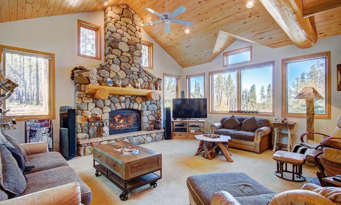 11 miles from Frisco Historic Park in Breckenridge, Boulder Lodge at Peak 8 home features accommodations with access to a hot tub. This vacation home is 28 miles from Mount Evans. The vacation home also offers free Wifi and free private parking. The vacation home is composed of 5 separate bedrooms, a fully equipped kitchen with a dishwasher and an oven, and 5 bathrooms. Towels and bed linen are offered in the vacation home. The accommodation has a fireplace. During the colder months, guests can enjoy winter sports in the surrounding area. Guests at the vacation home will be able to enjoy activities in and around Breckenridge, like cycling. Eagle County Regional Airport is 70 miles from the property.