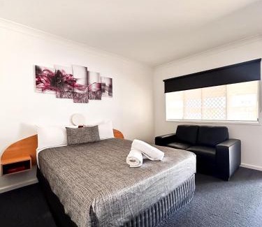 Boulevard Lodge is a family-run and operated motel located in Bundaberg with 26 spacious and comfortable rooms available - suitable for both business travelers or those looking for a getaway. We are located in an extremely convenient location with the Bundaberg Airport only a short drive away and Sugarland Shopping Center and multiple restaurants all within walking distance from the Lodge. All guest rooms are appointed with a kitchenette, airconditioning, Smart TV's and FREE wi-fi. Room service breakfast is also available 7 days a week. Boulevard Lodge is 3 minutes’ drive from Dromeside Raceway and CQUniversity Bundaberg. Bundaberg Regional Airport is also only a 5-minute drive away. Come and enjoy the service provided by our friendly hosts Anthony & Maddison. We know you'll enjoy the experience!