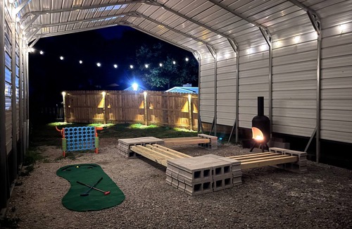 A great place to hang with friends, Bourbon Blue is your destination for larger groups visiting the Bourbon Trail. Enjoy the barrel sauna, 75" Roku TV with Guest Mode & deep couch in living room, 40" Roku TV with Guest Mode in each bedroom, multiple covered outdoor gathering spaces including dining space for ten & firepit, horseshoes, connect four, putting green, fully-equipped kitchen & bar area, foosball table & game space, and most importantly - serenely comfy beds! Located 8 minutes from downtown Bardstown and a straight shot down main street toward Louisville. Bourbon Blue is waiting!