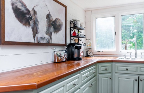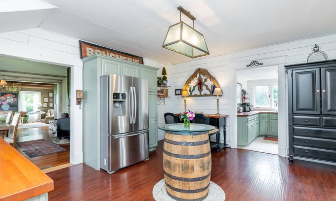 The Horse & Hound is a unique and charming home located on Chickapoo Farm. This 100+ year old farmhouse is the perfect place to come relax, unwind, and get away from the hustle and bustle of city life. The elegant and captivating features in this historical home, along with the beautiful landscape are sure to make your stay a memorable experience. Fall back to a simpler time and feel the stress melt away at Chickapoo Farm in Shelbyville, KY.