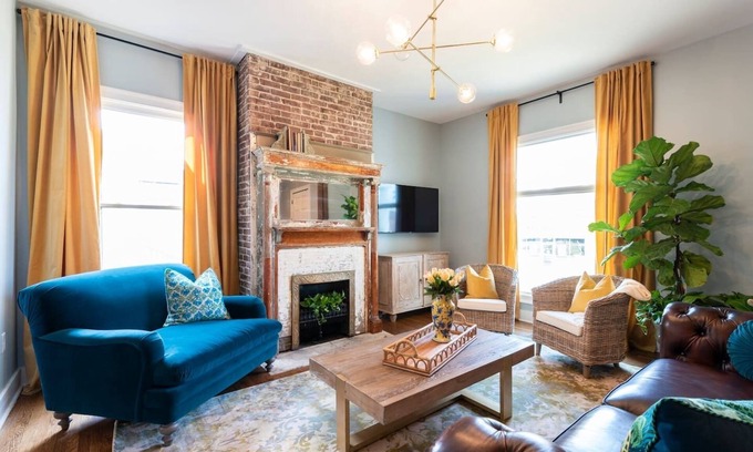 Enjoy a modern, bourbon-chic escape in Louisville’s vibrant Highlands, steps from Wheated’s Brooklyn-style pizza and Chef Lamas’ acclaimed Seviche. Perfect for large groups or families, this spacious home offers 4 luxurious King Suites, 5.5 modern bathrooms, an open kitchen, and two living rooms designed for relaxation and connection. Grill in the private outdoor space or unwind at the cozy coffee bar. Just 5–7 minutes from Louisville Zoo, Mega Cavern, and Bourbon & Beyond, with Wi-Fi, air conditioning, washer/dryer, and parking included.