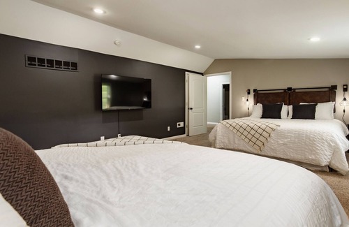 Enjoy the ultimate country getaway at this stunning home that sets the standard for luxury and elegance along the famed Bourbon Trail. The interior spans 5,000+ sq. ft. across 3 levels of impeccably designed space and features 4 bedrooms, 5 king-size beds, and 3.5 baths to comfortably accommodate up to 10 guests. Set on over 3.5 peaceful acres of rolling lawns, the estate features a long list of luxe amenities including inground pool, hot tub, speakeasy, fire ring area, & billiards room.