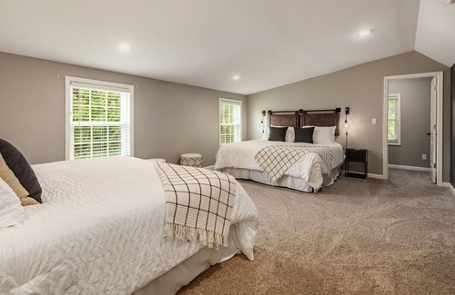 When it’s time to rest and recharge, privacy reigns in the sumptuous main suite with magnificent king bed, smart TV, huge walk-in closet, and elegant bath. A standalone tub under a large picture window, separate shower area, and dual vanity sinks are hallmarks of this impressive bathroom. Three more bedrooms - all with king beds - and 2 additional full baths upstairs are lushly styled for luxury and comfort, offering wonderful sleeping options for any group configuration.