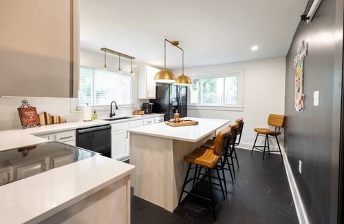 Experience refined comfort at our meticulously decorated 3-bedroom, 2-bathroom home, nestled in the vibrant heart of the Bourbon Trail. Our residence boasts a spacious open-concept living and dining area, a fully-equipped kitchen, and a dedicated laundry room for your convenience.