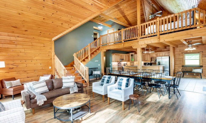 Come stay at Heavenly House! Just a few miles off the Bluegrass Parkway, this spacious Log Cabin sits on over 15 acres of Kentucky wooded farm land. Great for a Bourbon Trail weekend away with friends, the house is central to all the distilleries in Bardstown, Lawrenceburg, and Loretto. When you’re done for the day, return to Heavenly House to cook dinner in the spacious and open kitchen, play darts or Pop-A-shot, or enjoy time by the firepit.